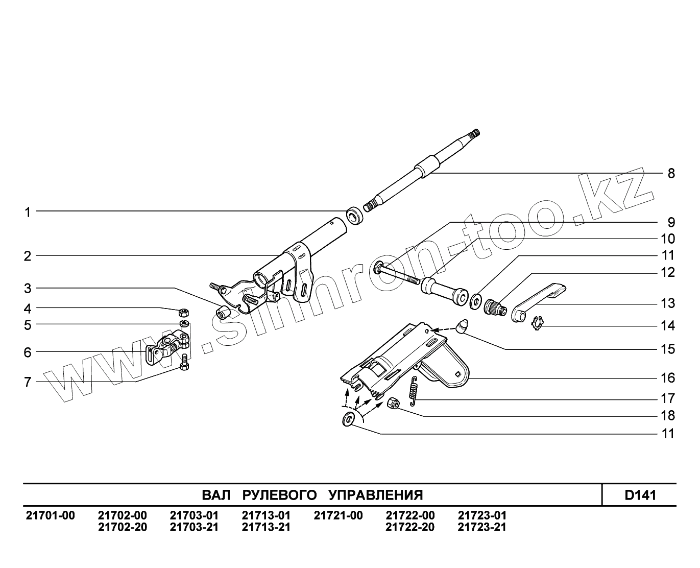 Каталог запасных частей к технике: ВАЗ LADA Priora (ВАЗ-2170). D141. Вал рулевого управления