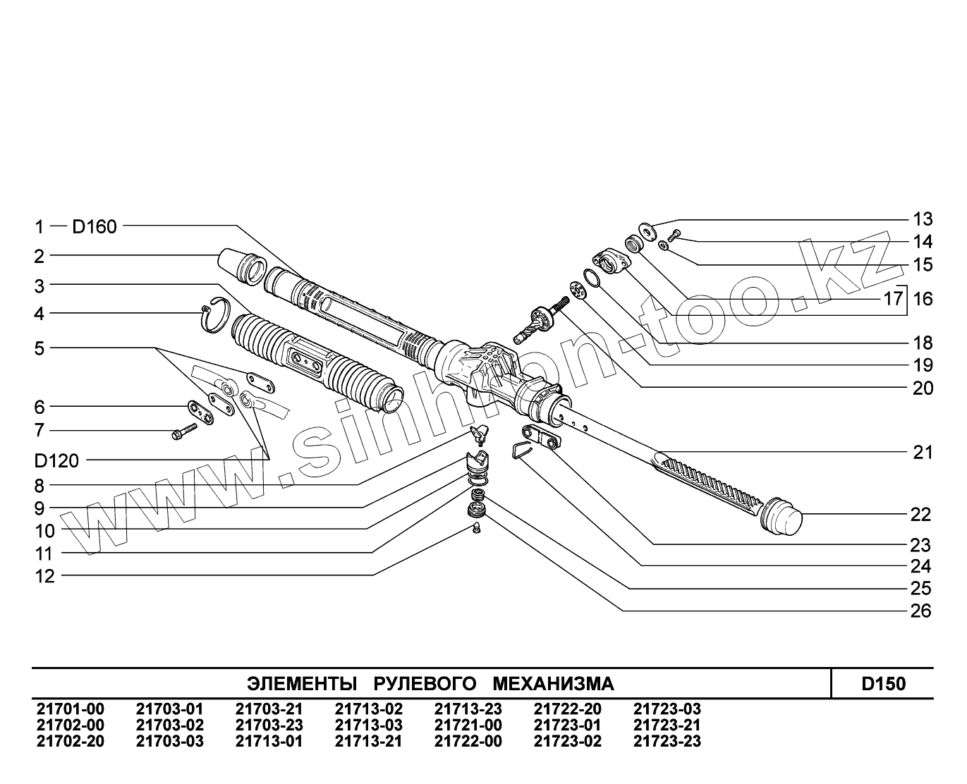 Каталог запасных частей к технике: ВАЗ LADA Priora (ВАЗ-2170). D150. Элементы рулевого механизма