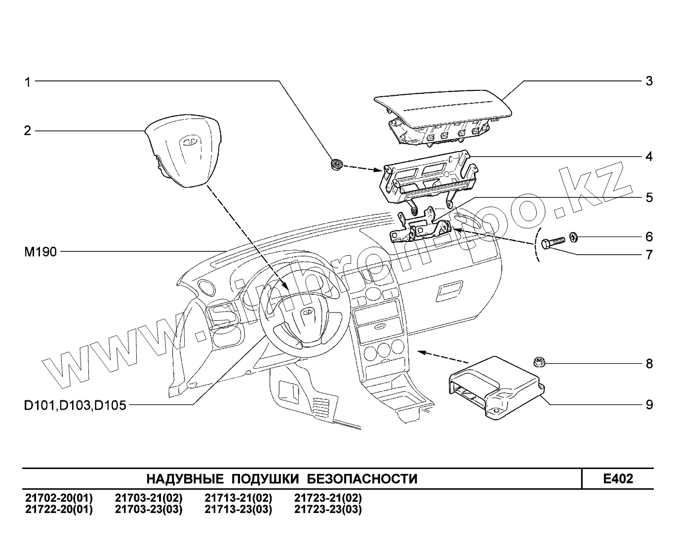 Каталог запасных частей к технике: ВАЗ LADA Priora (ВАЗ-2170). E402. Надувные подушки безопасности