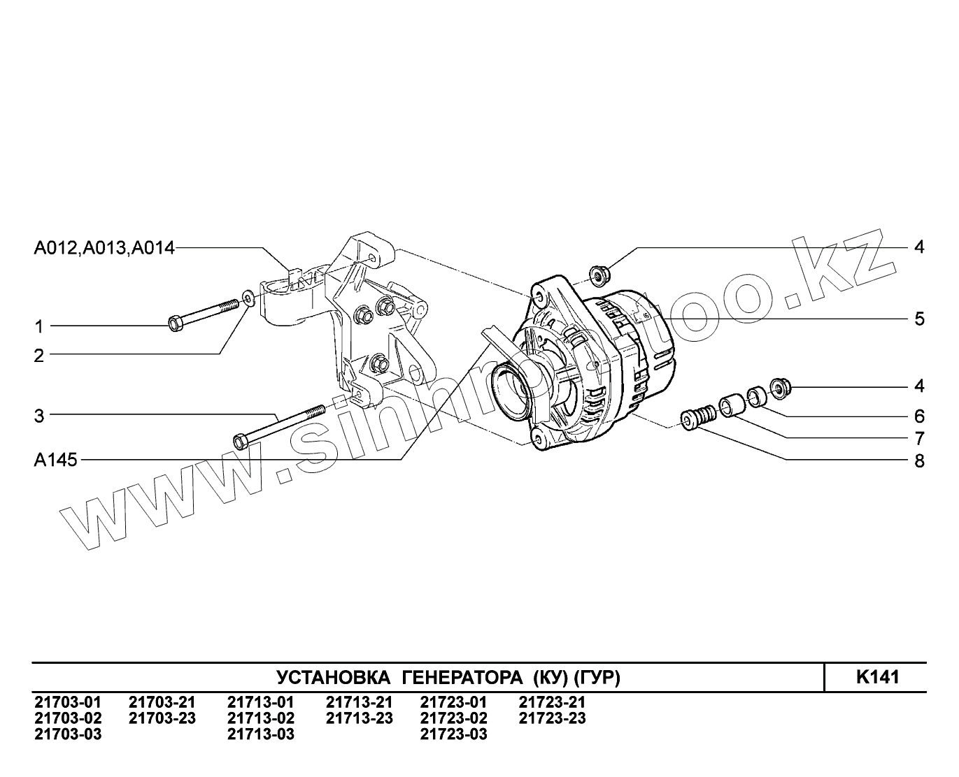 Каталог запасных частей к технике: ВАЗ LADA Priora (ВАЗ-2170). K141. Установка генератора