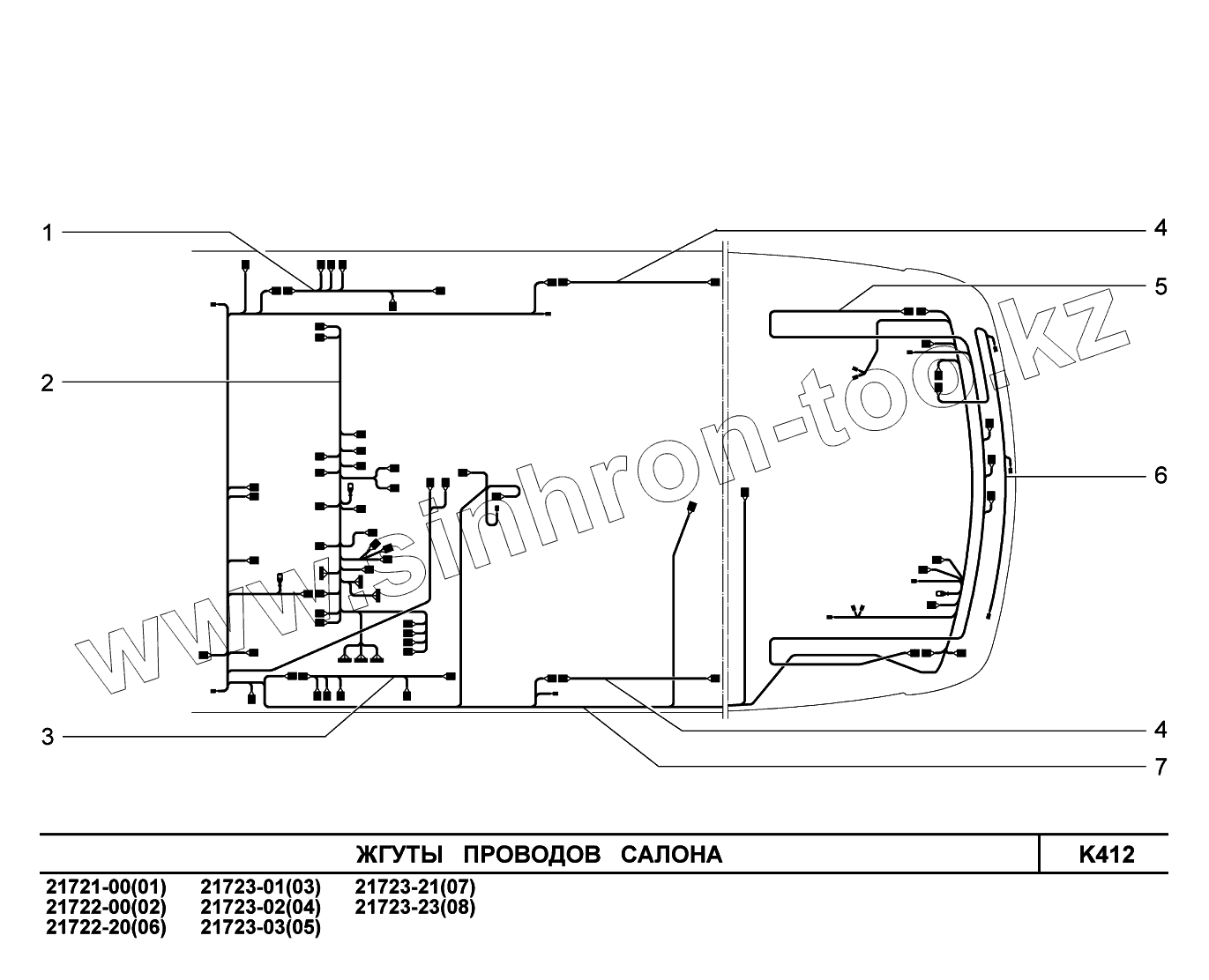 Каталог запасных частей к технике: ВАЗ LADA Priora (ВАЗ-2170). K412. Жгуты проводов салона