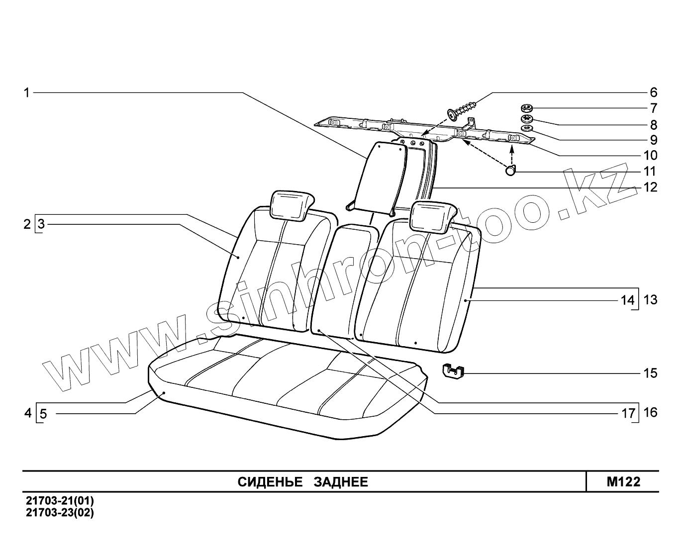 Каталог запасных частей к технике: ВАЗ LADA Priora (ВАЗ-2170). M122. Сиденье заднее