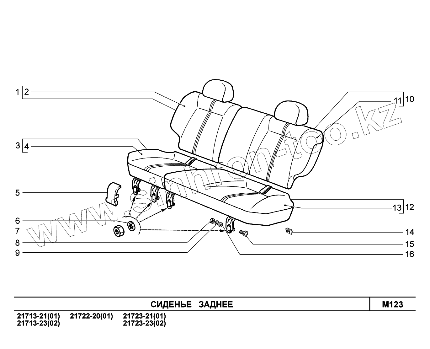 Каталог запасных частей к технике: ВАЗ LADA Priora (ВАЗ-2170). M123. Сиденье заднее
