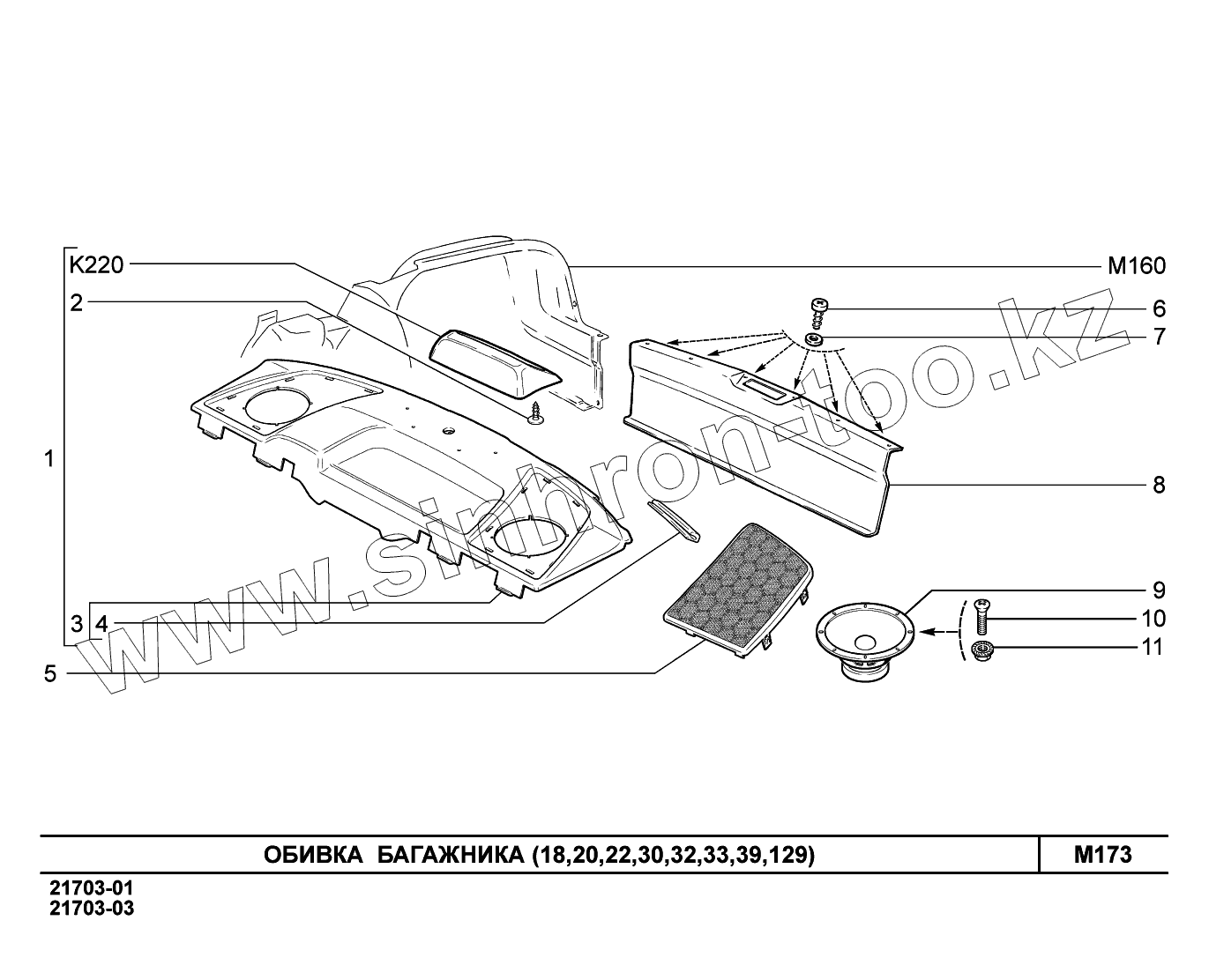 Каталог запасных частей к технике: ВАЗ LADA Priora (ВАЗ-2170). M173. Обивка багажника
