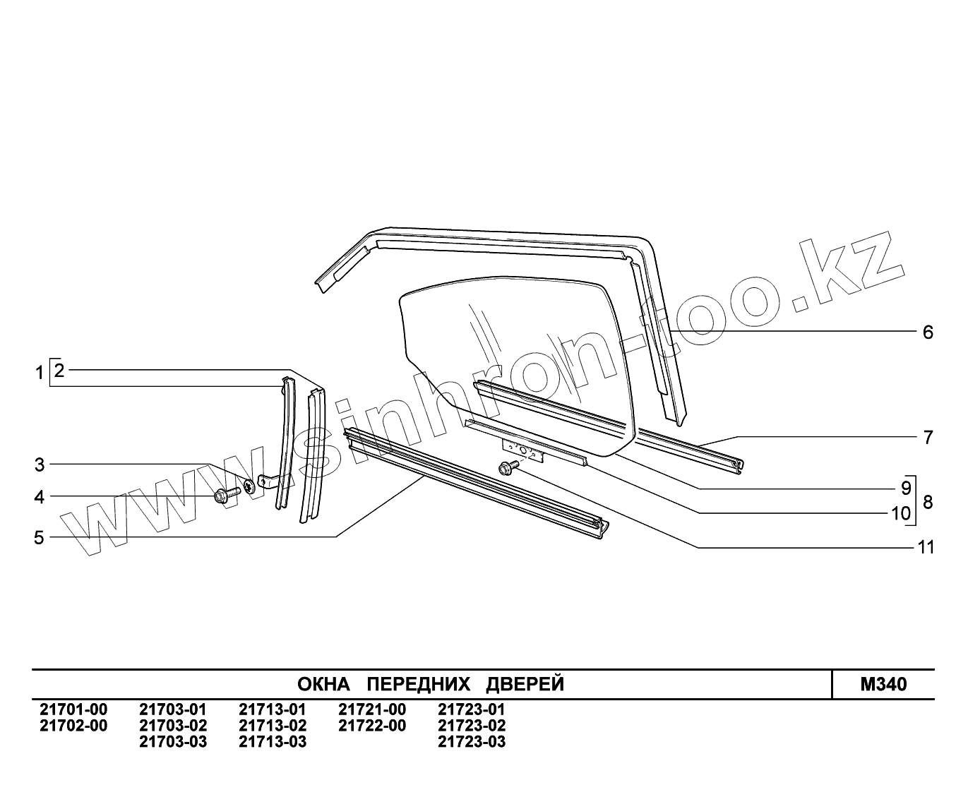 Каталог запасных частей к технике: ВАЗ LADA Priora (ВАЗ-2170). M340. Окна передних дверей