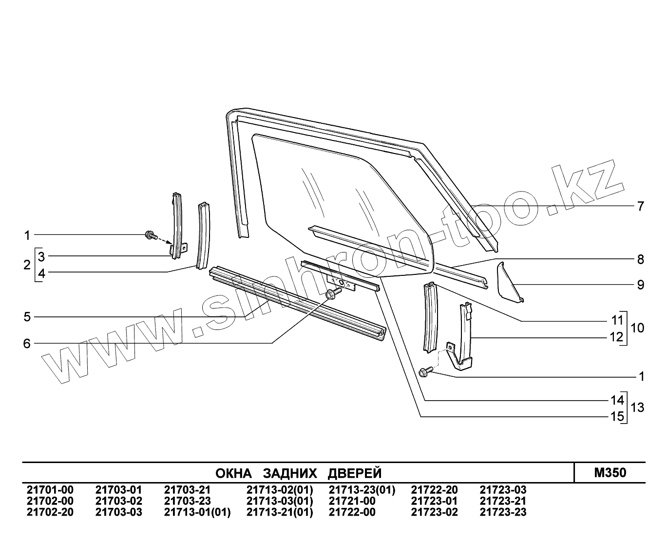 Каталог запасных частей к технике: ВАЗ LADA Priora (ВАЗ-2170). M350. Окна задних дверей