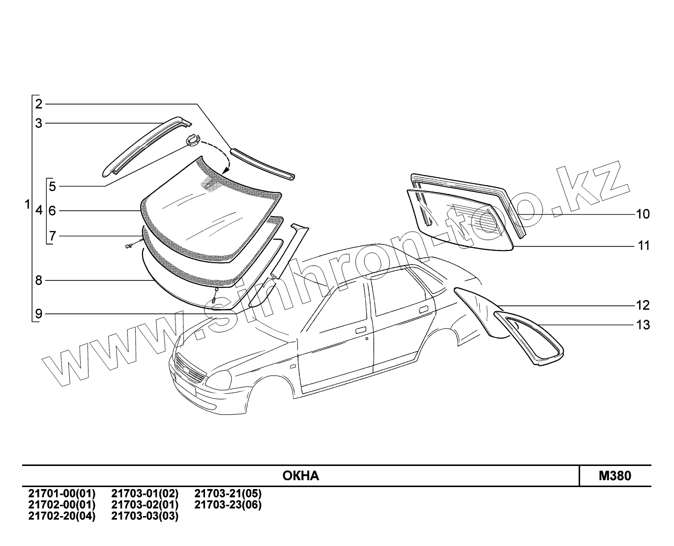 Каталог запасных частей к технике: ВАЗ LADA Priora (ВАЗ-2170). M380. Окна