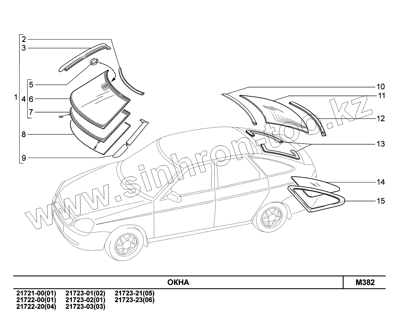 Каталог запасных частей к технике: ВАЗ LADA Priora (ВАЗ-2170). M382. Окна