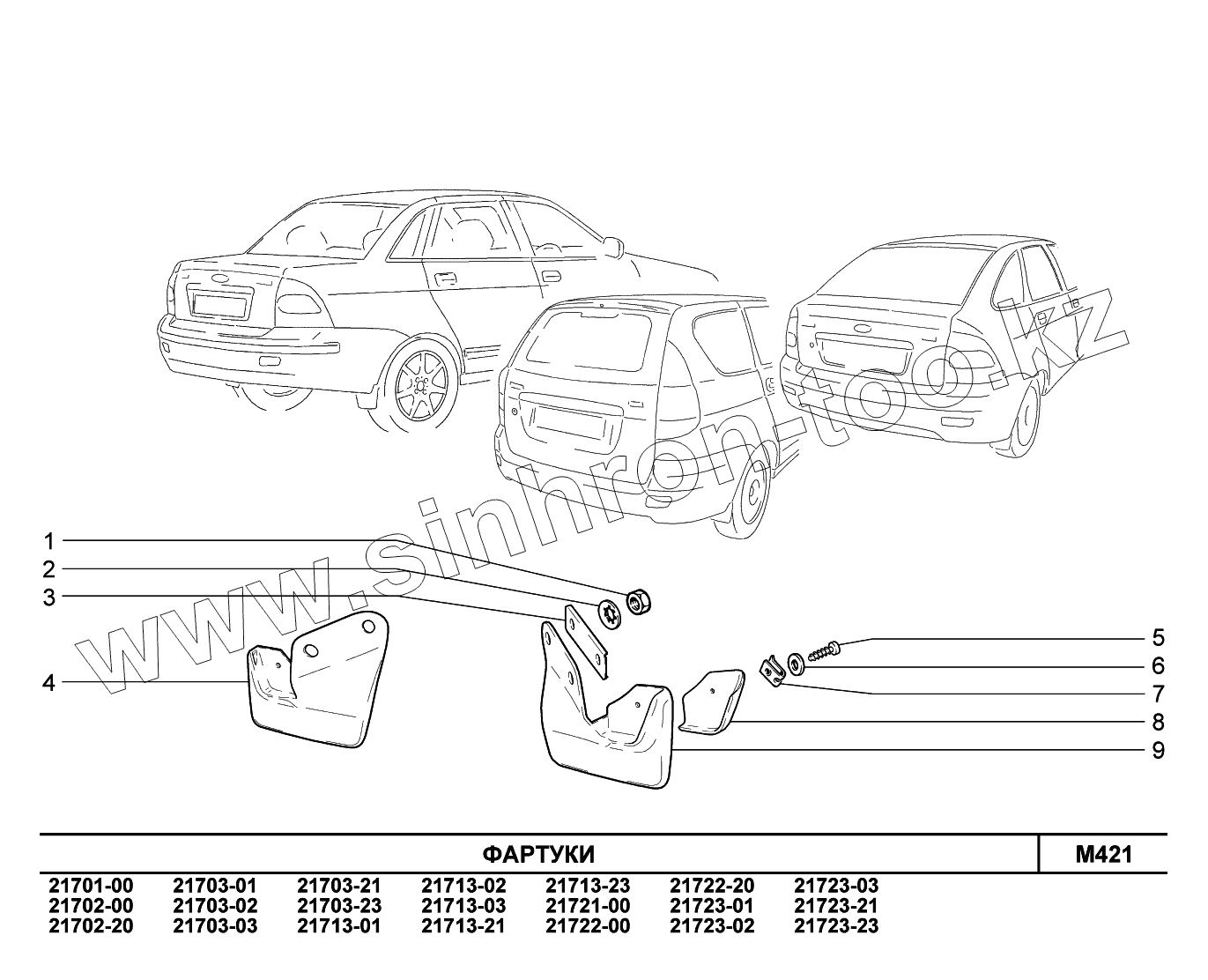 Каталог запасных частей к технике: ВАЗ LADA Priora (ВАЗ-2170). M421. Фартуки
