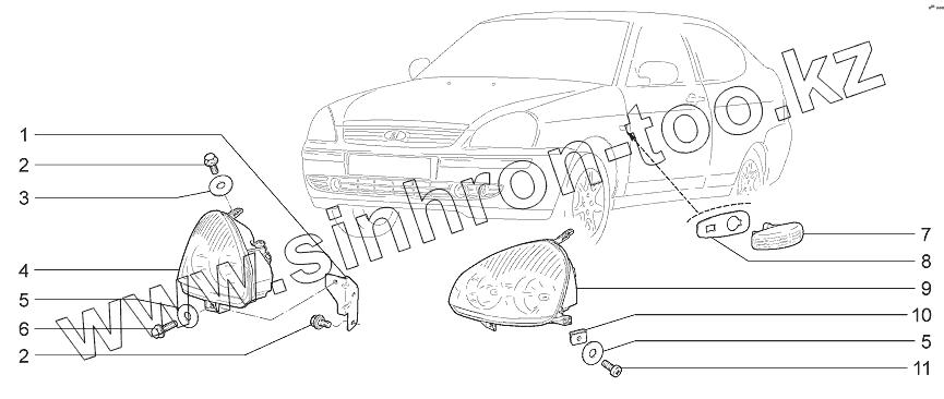 Каталог запасных частей к технике: ВАЗ LADA Priora Coupe. Приборы световые передние