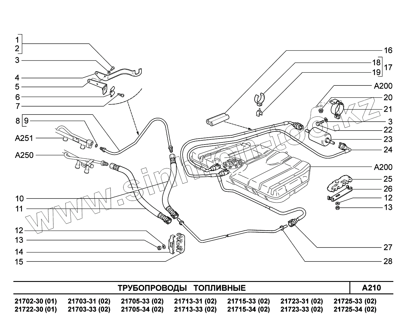Каталог запасных частей к технике: ВАЗ LADA Priora FL (ВАЗ-2170). A210. Трубопроводы топливные