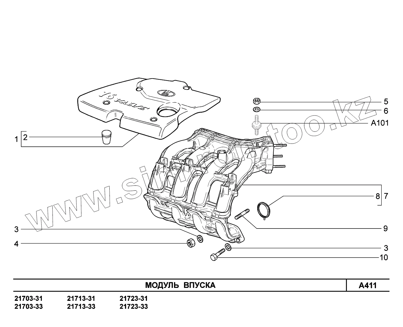 Каталог запасных частей к технике: ВАЗ LADA Priora FL (ВАЗ-2170). A411. Модуль впуска