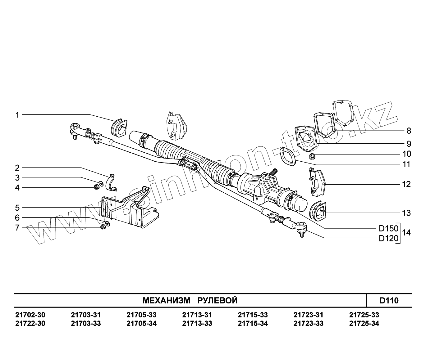 Каталог запасных частей к технике: ВАЗ LADA Priora FL (ВАЗ-2170). D110. Механизм рулевой