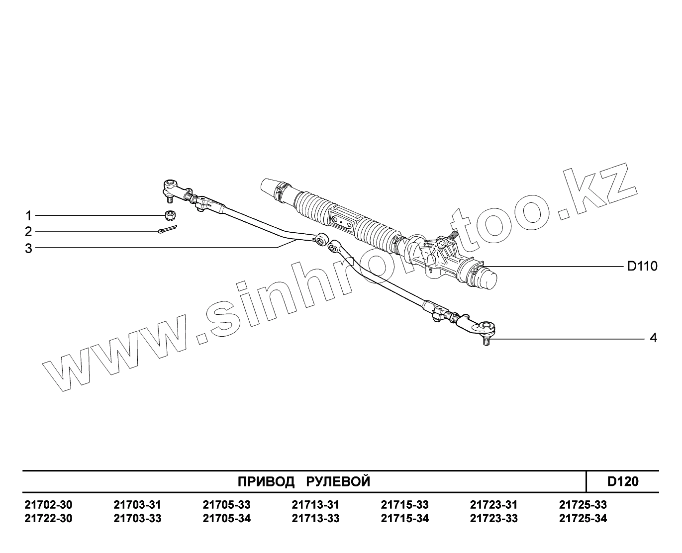 Каталог запасных частей к технике: ВАЗ LADA Priora FL (ВАЗ-2170). D120. Привод рулевой