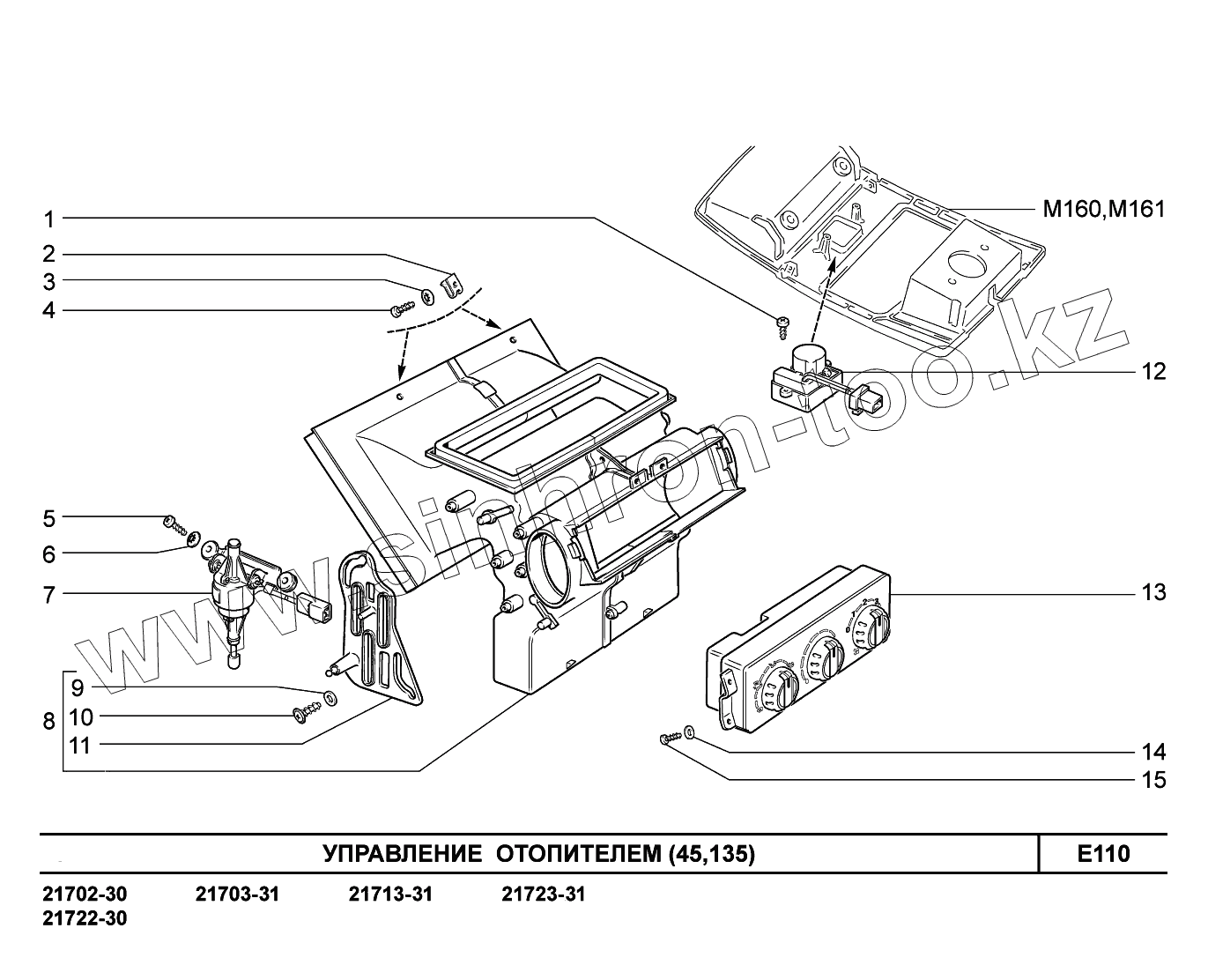 Каталог запасных частей к технике: ВАЗ LADA Priora FL (ВАЗ-2170). E110. Управление отопителем