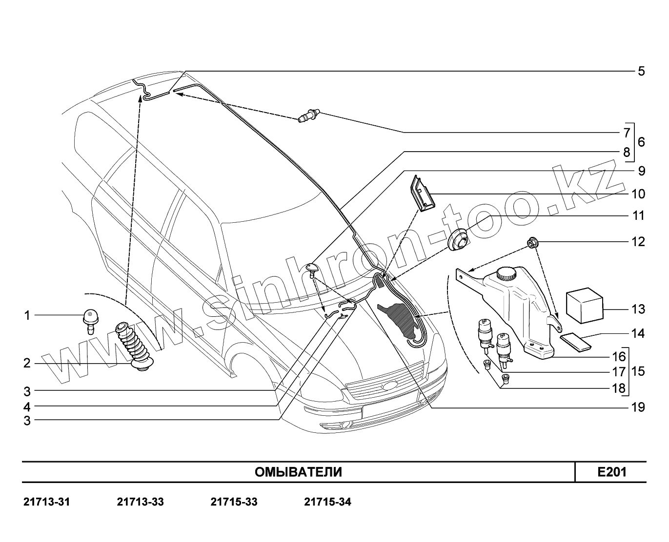 Каталог запасных частей к технике: ВАЗ LADA Priora FL (ВАЗ-2170). E201. Омыватели