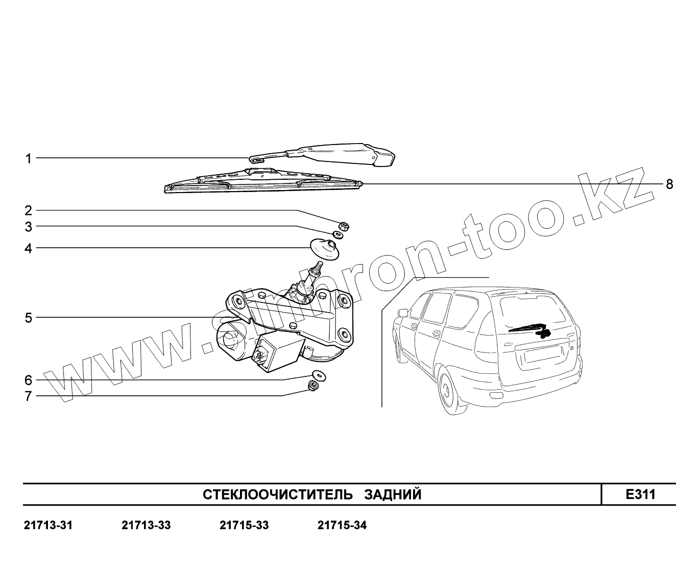 Каталог запасных частей к технике: ВАЗ LADA Priora FL (ВАЗ-2170). E311. Стеклоочиститель задний