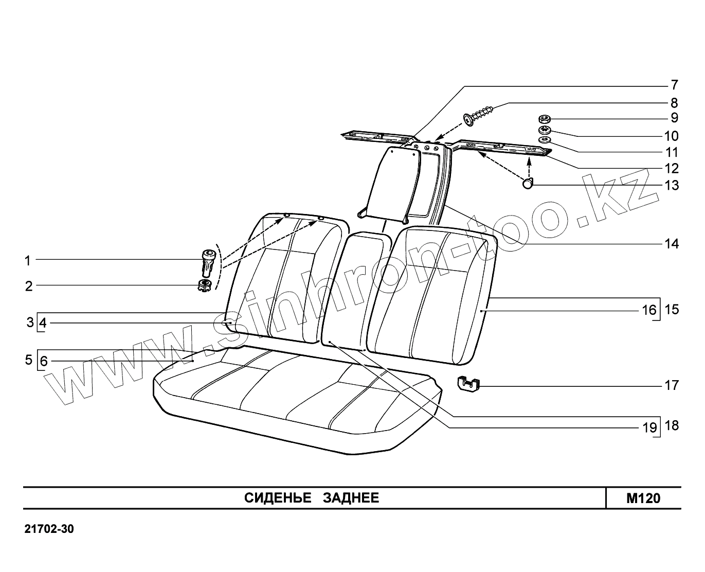 Каталог запасных частей к технике: ВАЗ LADA Priora FL (ВАЗ-2170). M120. Сиденье заднее