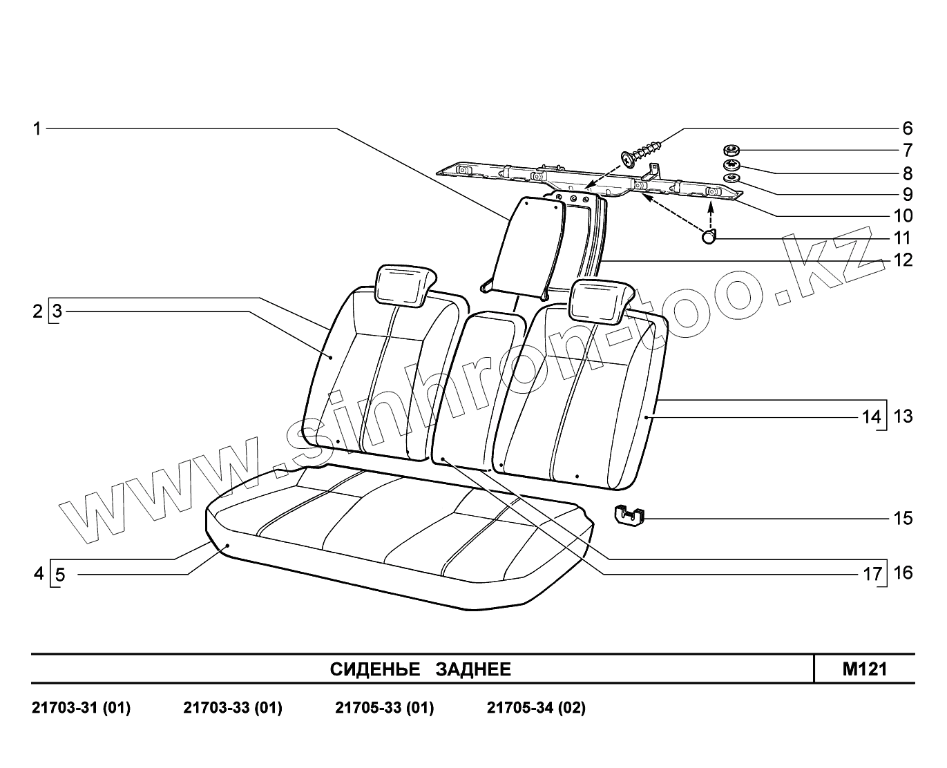 Каталог запасных частей к технике: ВАЗ LADA Priora FL (ВАЗ-2170). M121. Сиденье заднее