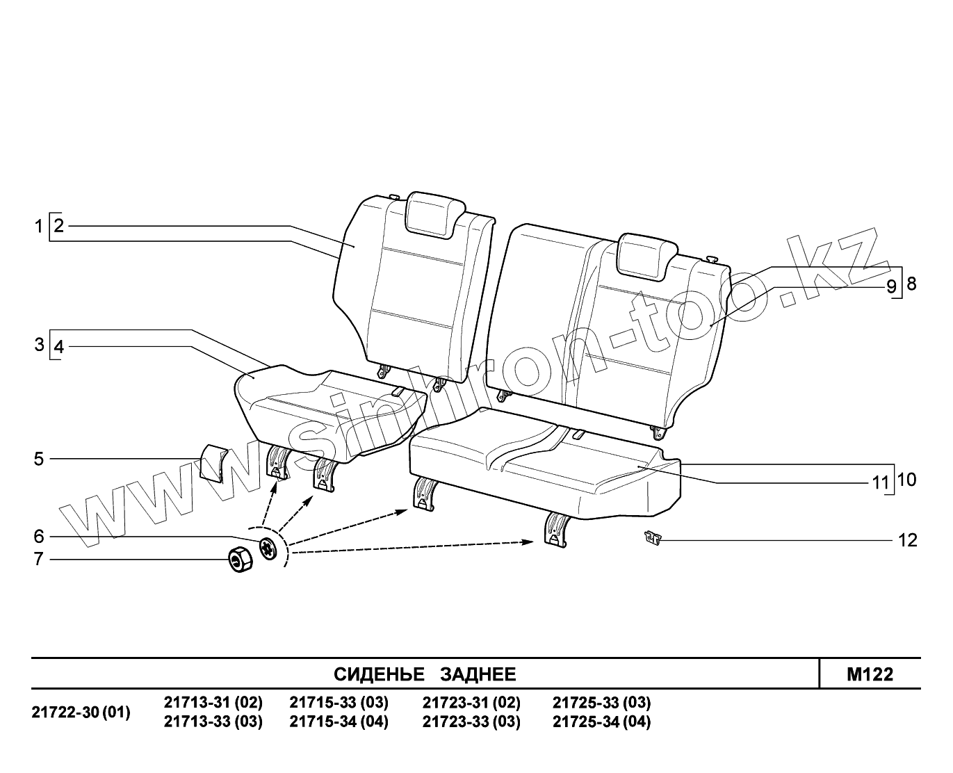 Каталог запасных частей к технике: ВАЗ LADA Priora FL (ВАЗ-2170). M122. Сиденье заднее