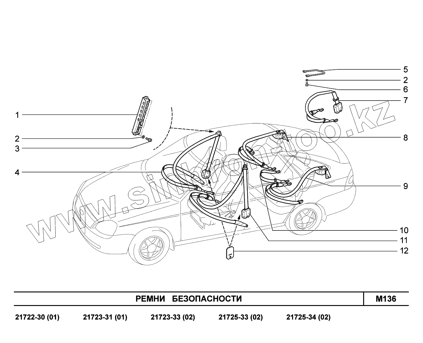 Каталог запасных частей к технике: ВАЗ LADA Priora FL (ВАЗ-2170). M136. Ремни безопасности