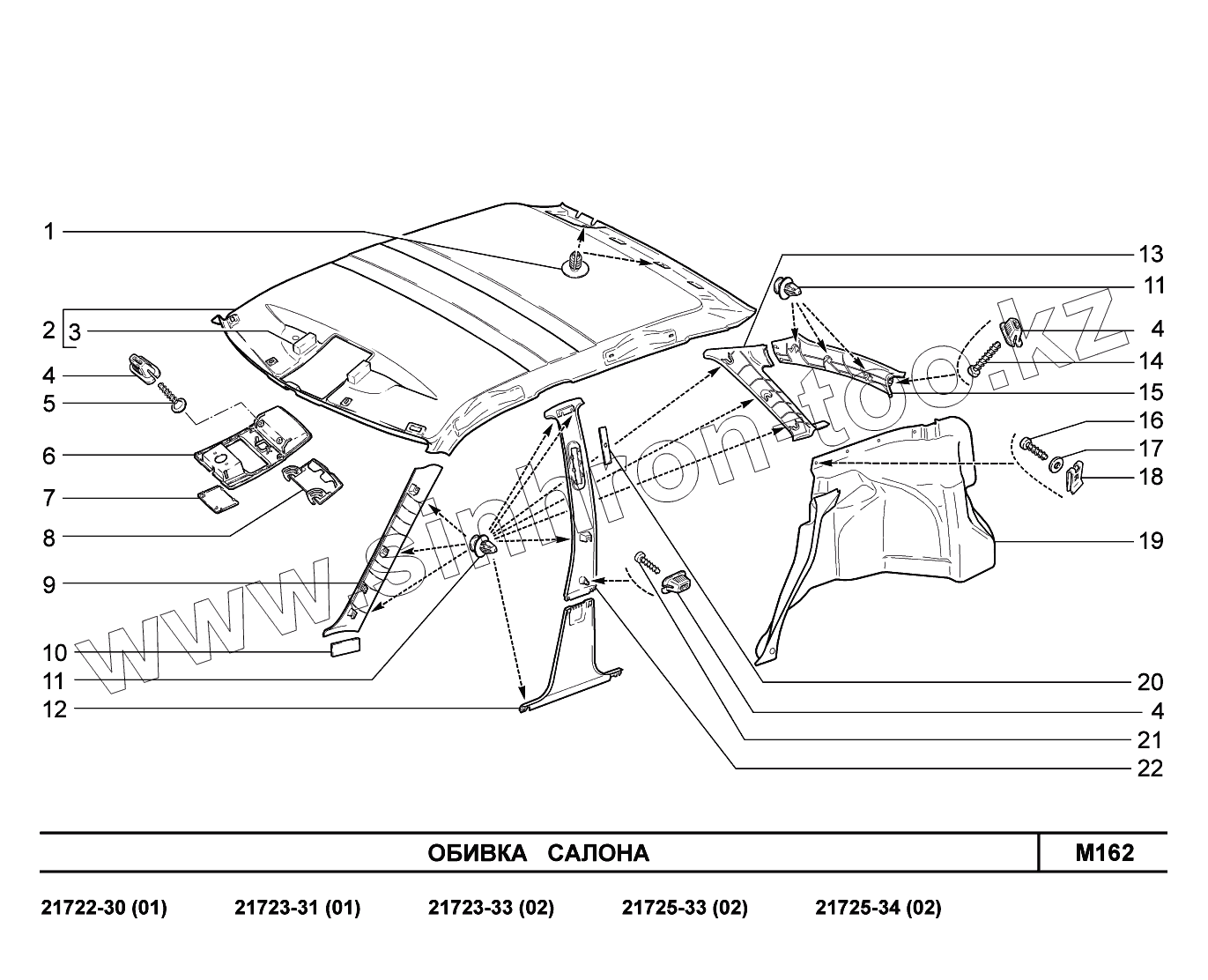 Каталог запасных частей к технике: ВАЗ LADA Priora FL (ВАЗ-2170). M162. Обивка салона