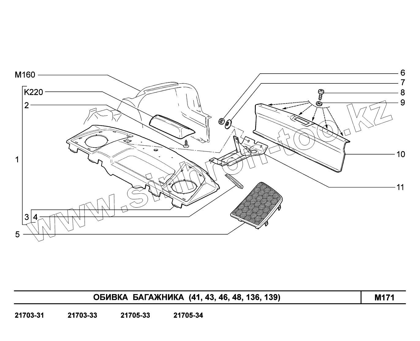 Каталог запасных частей к технике: ВАЗ LADA Priora FL (ВАЗ-2170). M171. Обивка багажника