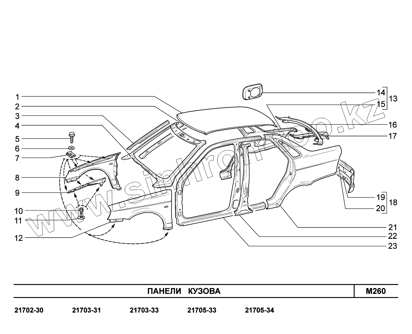 Каталог запасных частей к технике: ВАЗ LADA Priora FL (ВАЗ-2170). M260. Панели кузова