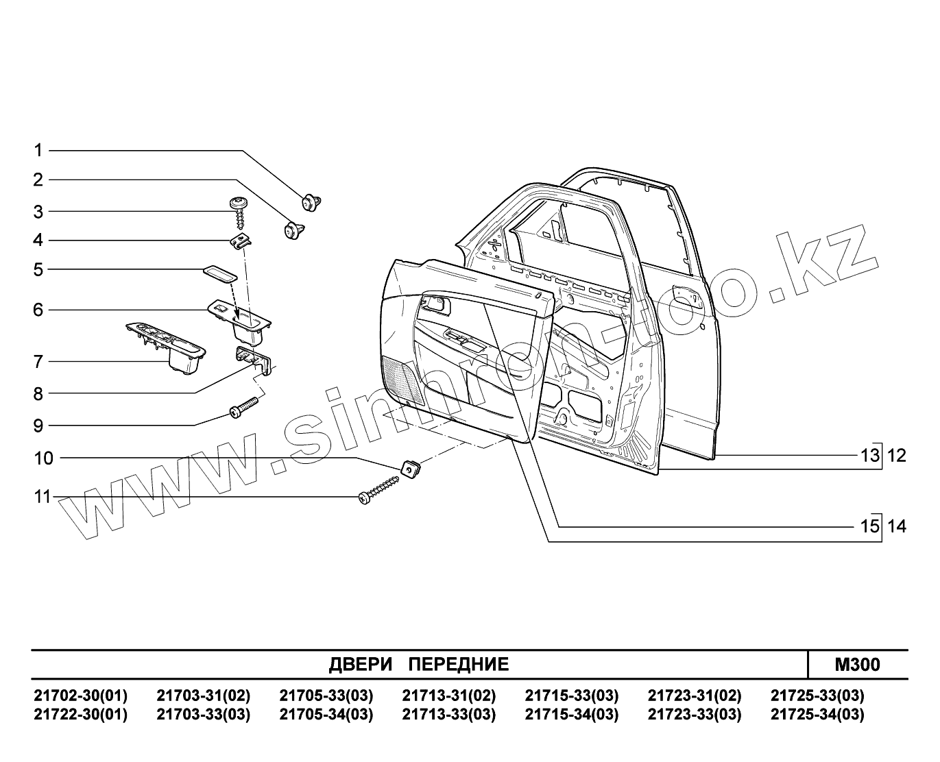 Каталог запасных частей к технике: ВАЗ LADA Priora FL (ВАЗ-2170). M300. Двери передние