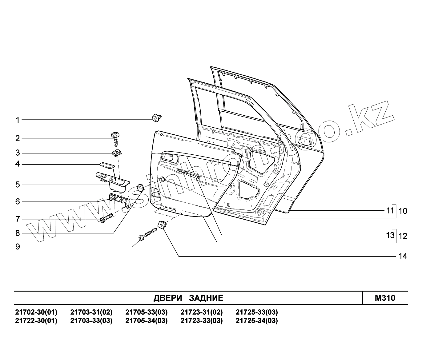 Каталог запасных частей к технике: ВАЗ LADA Priora FL (ВАЗ-2170). M310. Двери задние