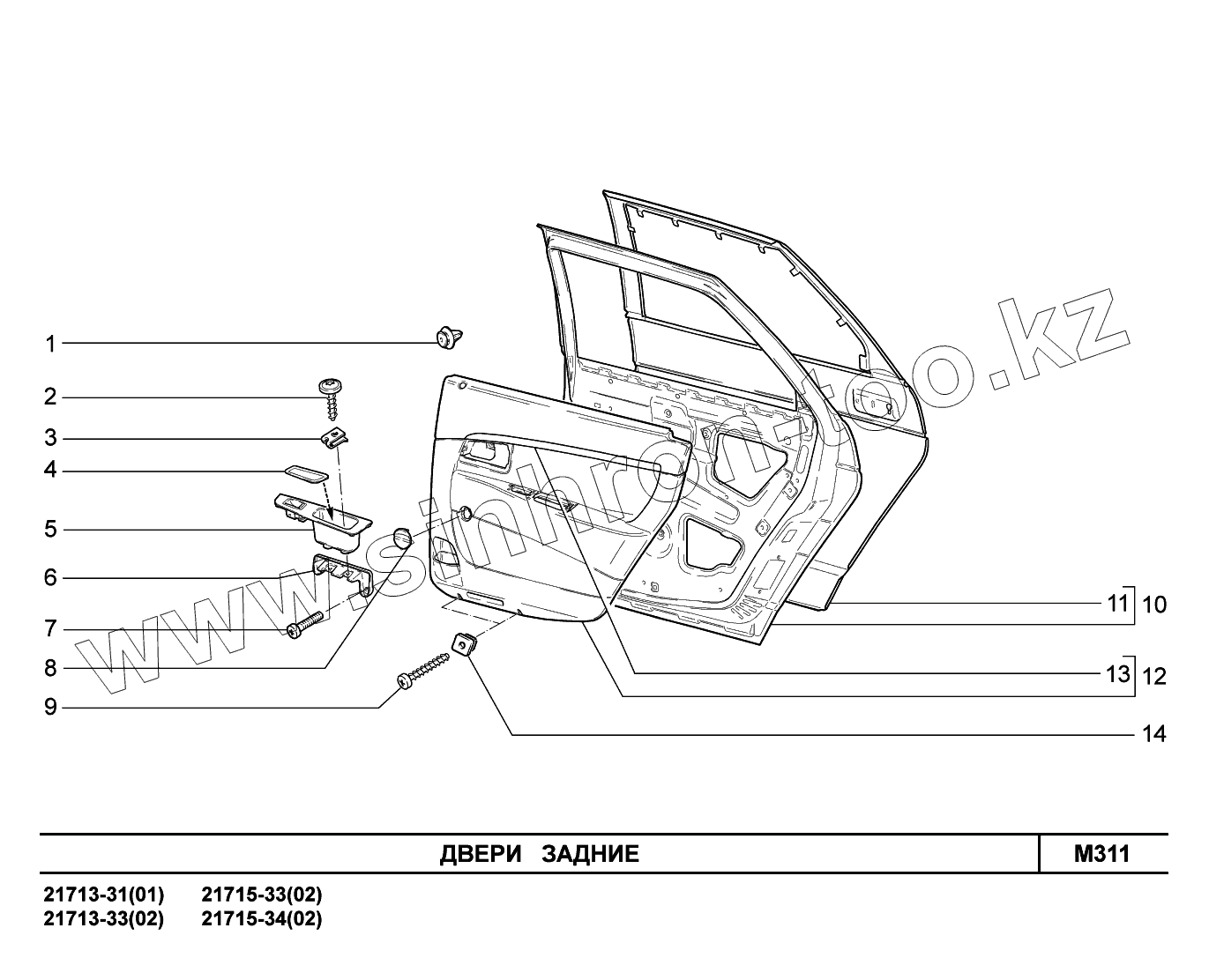 Каталог запасных частей к технике: ВАЗ LADA Priora FL (ВАЗ-2170). M311. Двери задние