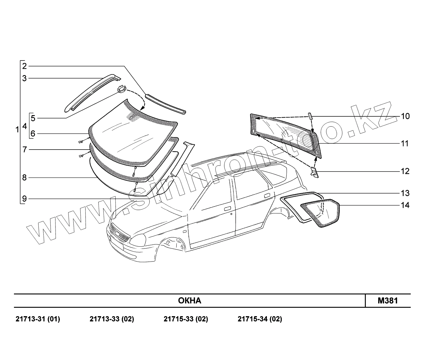 Каталог запасных частей к технике: ВАЗ LADA Priora FL (ВАЗ-2170). M381. Окна