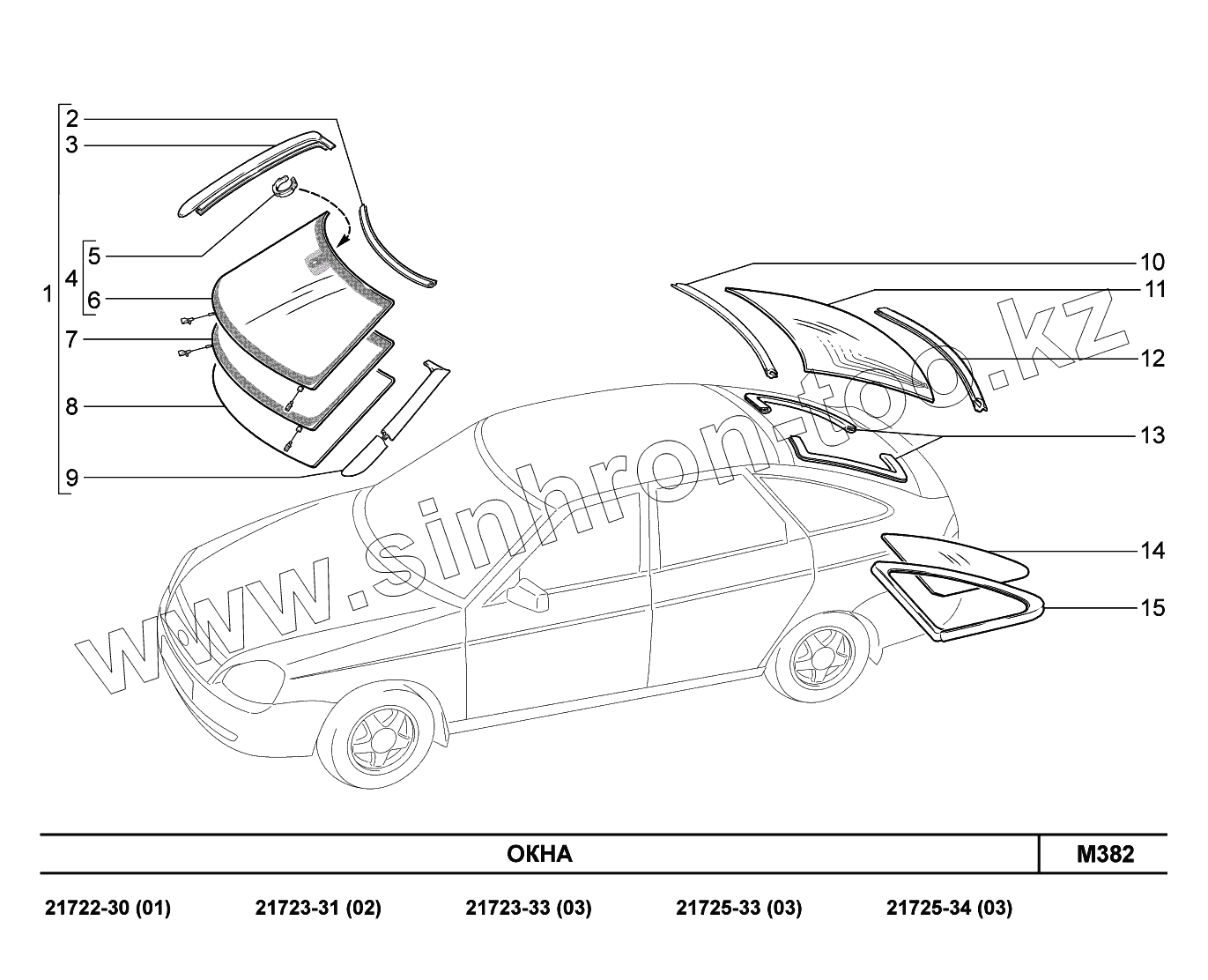 Каталог запасных частей к технике: ВАЗ LADA Priora FL (ВАЗ-2170). M382. Окна