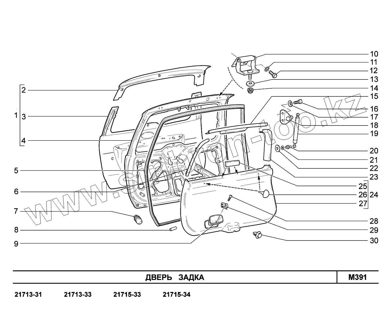 Каталог запасных частей к технике: ВАЗ LADA Priora FL (ВАЗ-2170). M391. Дверь задка