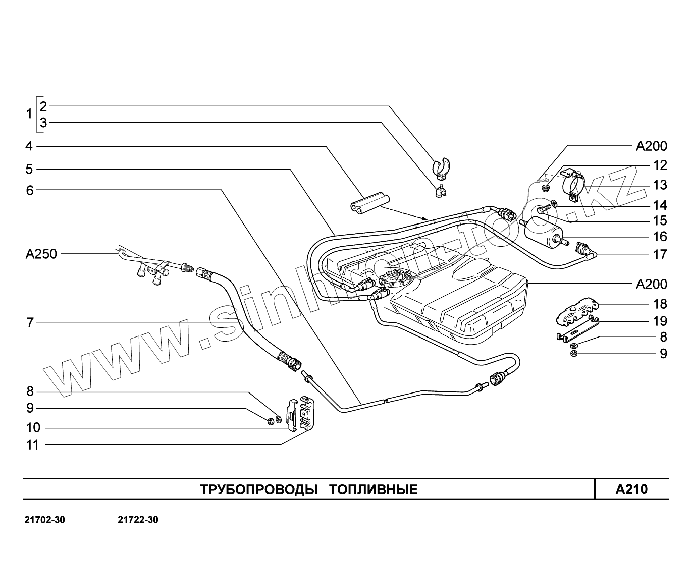 Каталог запасных частей к технике: ВАЗ LADA Priora FL (ВАЗ-2170). A210. Трубопроводы топливные