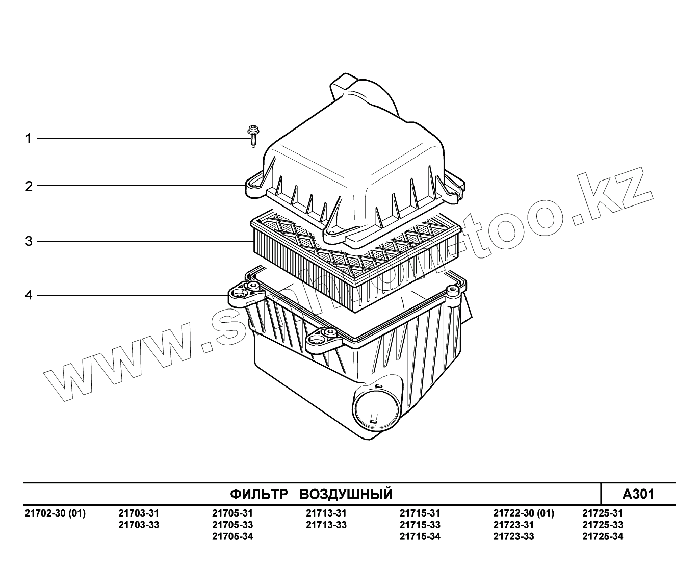 Каталог запасных частей к технике: ВАЗ LADA Priora FL (ВАЗ-2170). A301. Фильтр воздушный