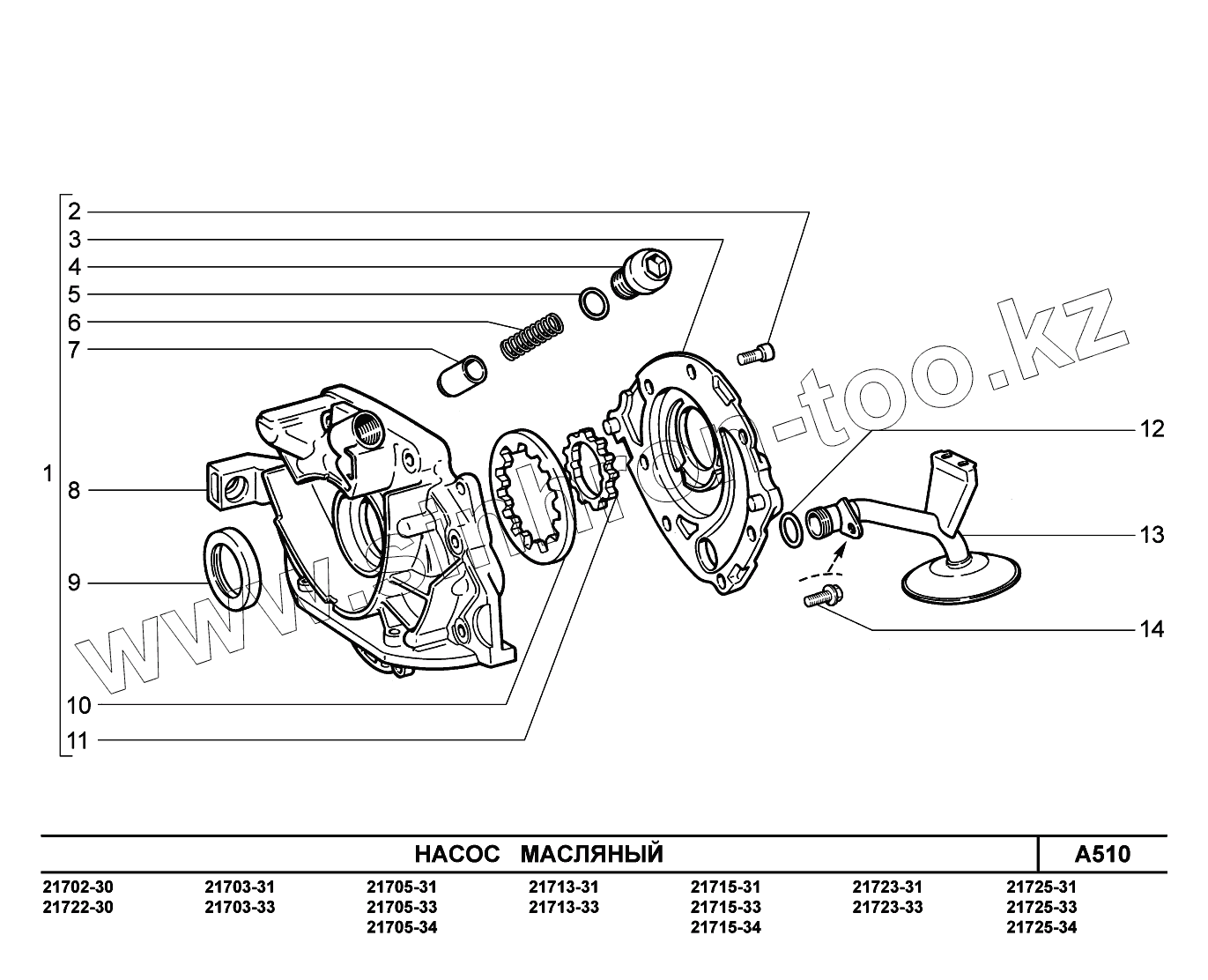 Каталог запасных частей к технике: ВАЗ LADA Priora FL (ВАЗ-2170). A510. Насос масляный