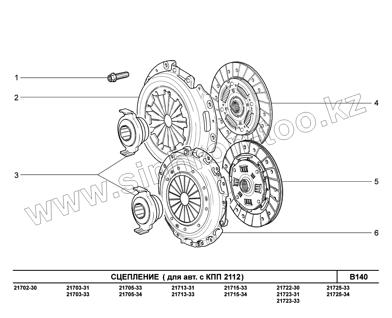 Каталог запасных частей к технике: ВАЗ LADA Priora FL (ВАЗ-2170). B140. Сцепление