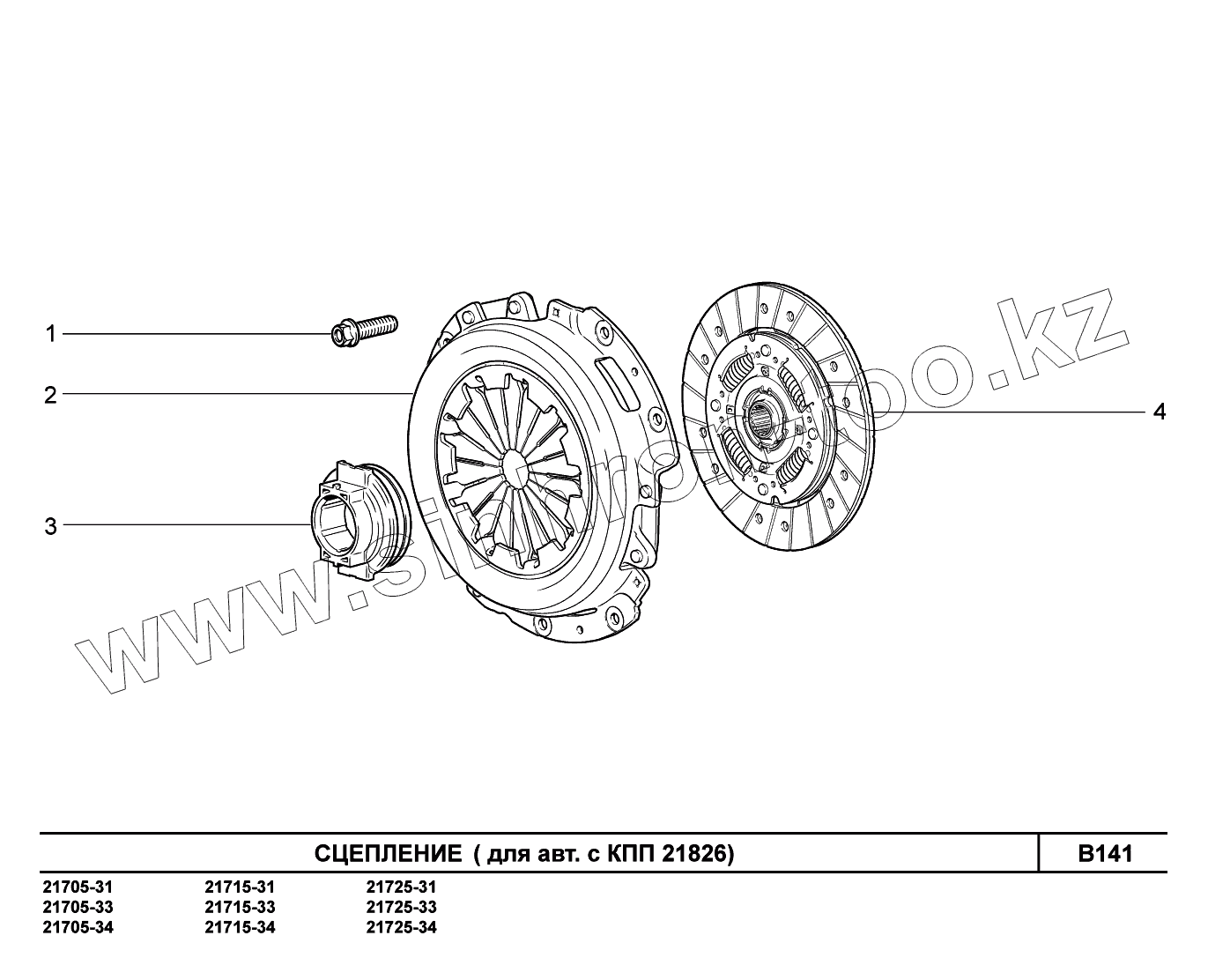 Каталог запасных частей к технике: ВАЗ LADA Priora FL (ВАЗ-2170). B141. Сцепление