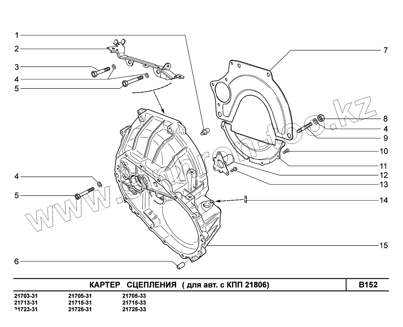 Каталог запасных частей к технике: ВАЗ LADA Priora FL (ВАЗ-2170). B152. Картер сцепления