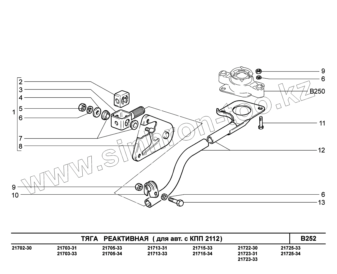 Каталог запасных частей к технике: ВАЗ LADA Priora FL (ВАЗ-2170). B252. Тяга реактивная