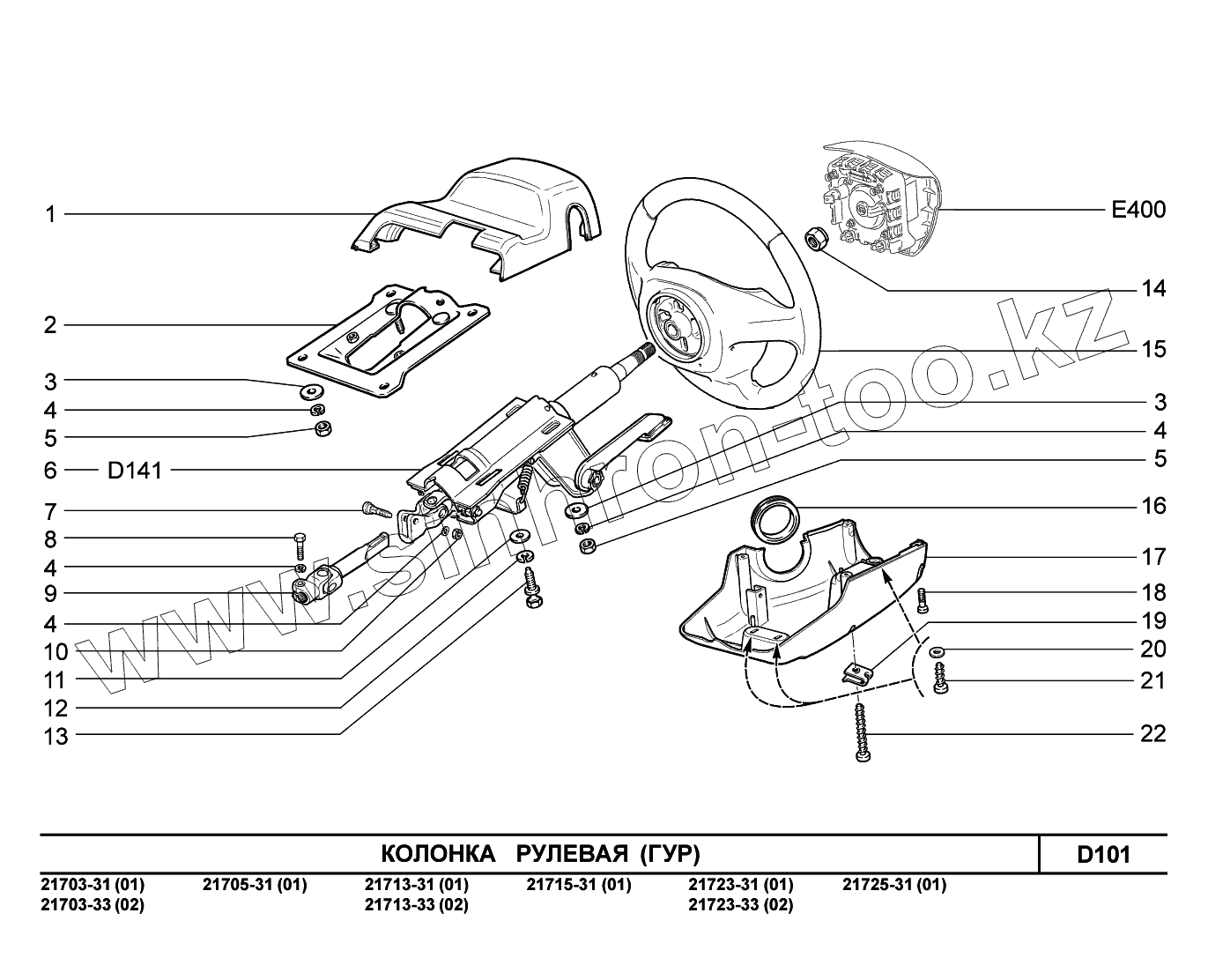 Каталог запасных частей к технике: ВАЗ LADA Priora FL (ВАЗ-2170). D101. Колонка рулевая