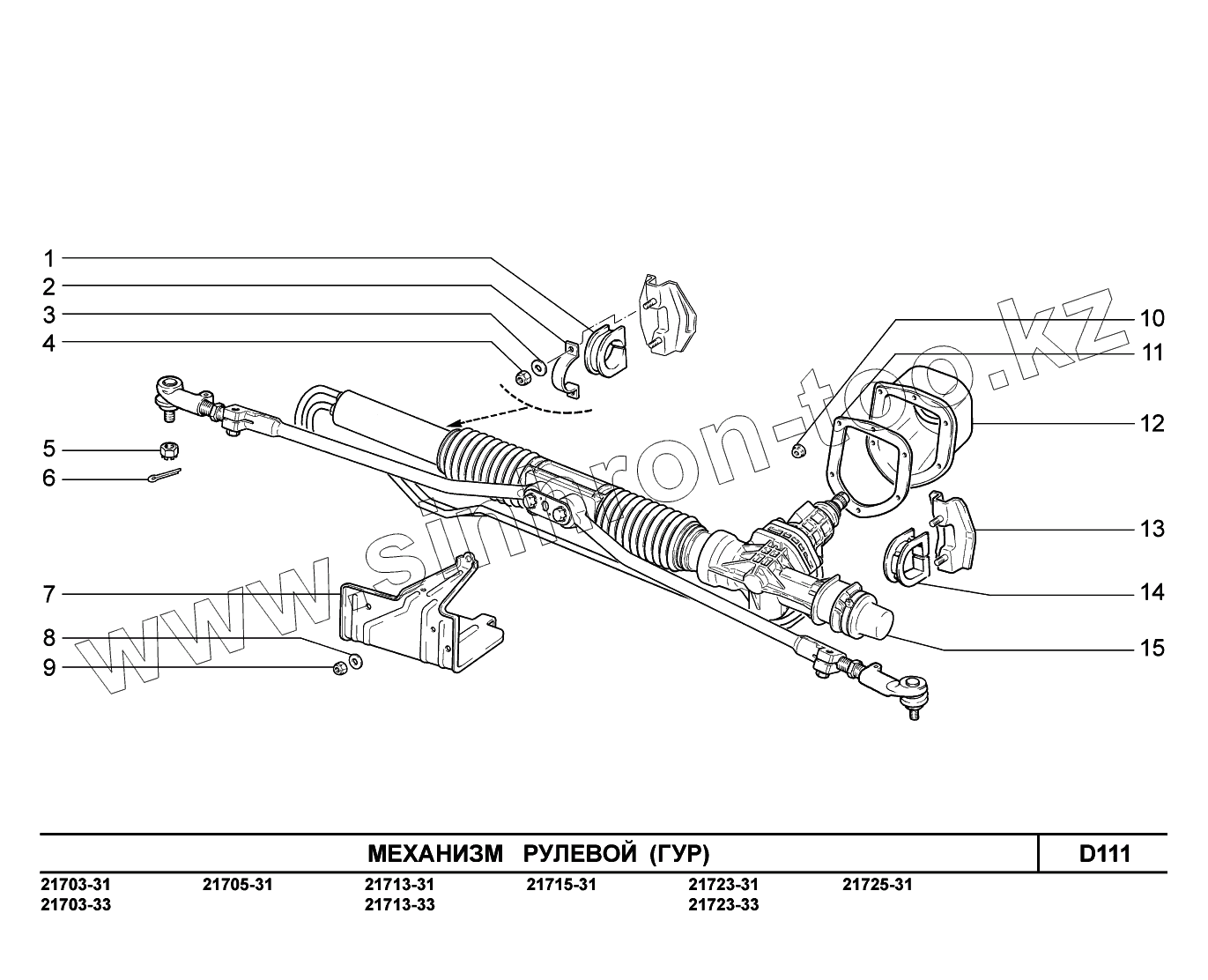 Каталог запасных частей к технике: ВАЗ LADA Priora FL (ВАЗ-2170). D111. Механизм рулевой