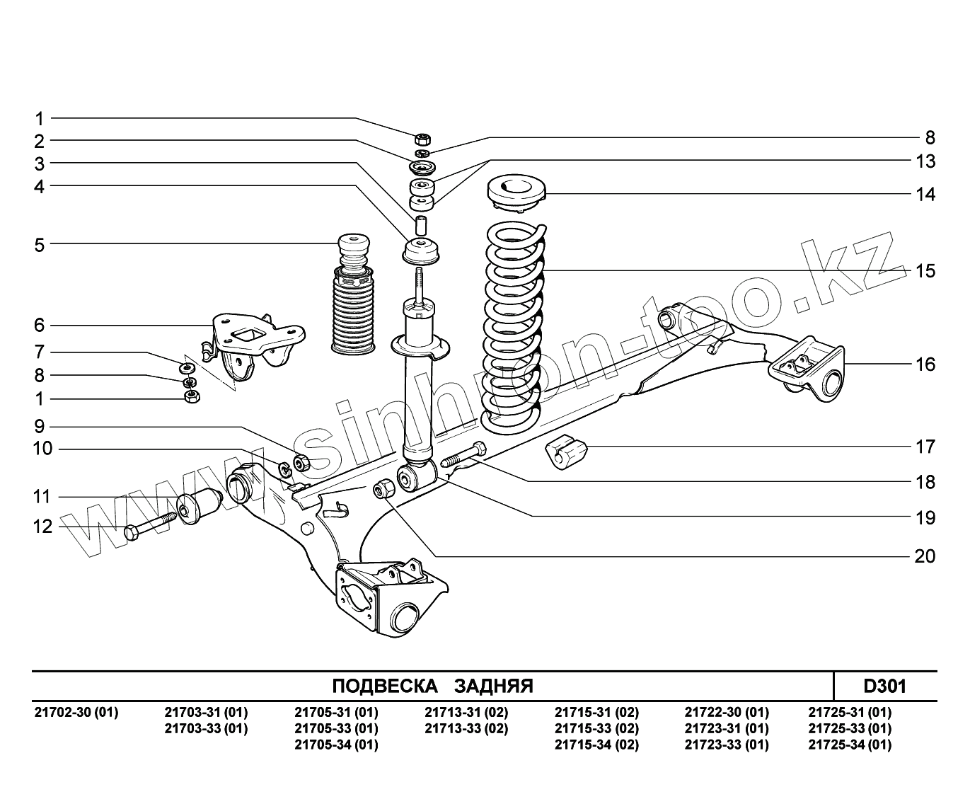 Каталог запасных частей к технике: ВАЗ LADA Priora FL (ВАЗ-2170). D301. Подвеска задняя