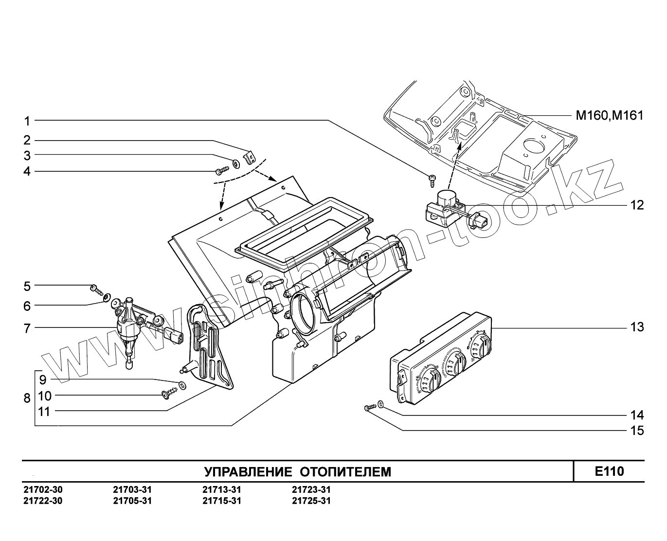 Каталог запасных частей к технике: ВАЗ LADA Priora FL (ВАЗ-2170). E110. Управление отопителем