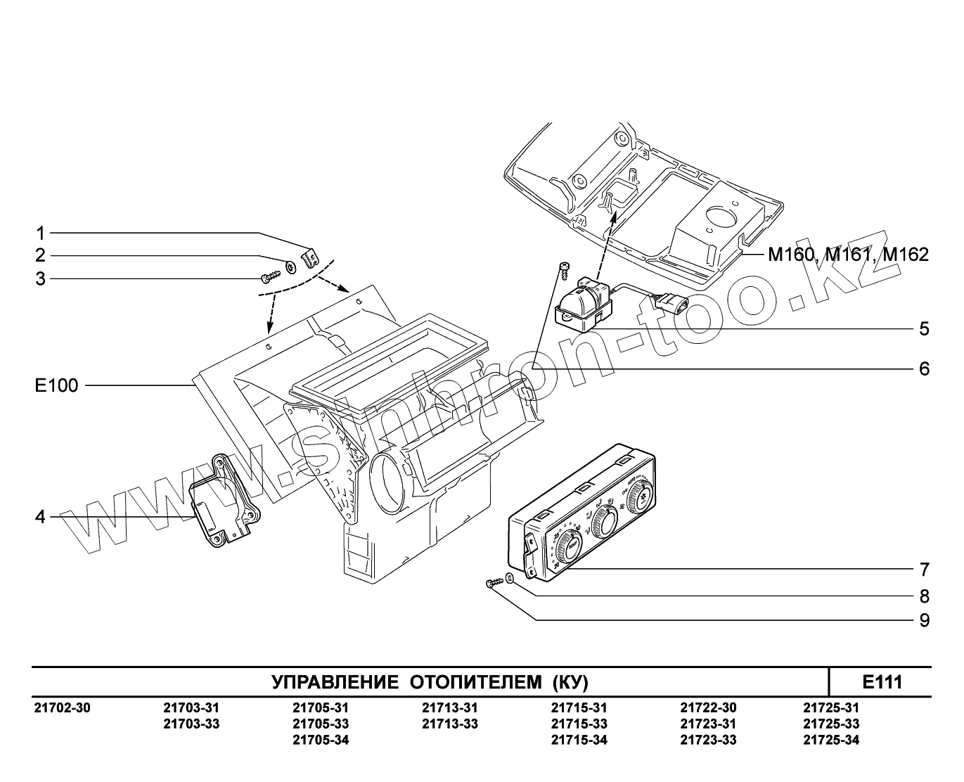 Каталог запасных частей к технике: ВАЗ LADA Priora FL (ВАЗ-2170). E111. Управление отопителем