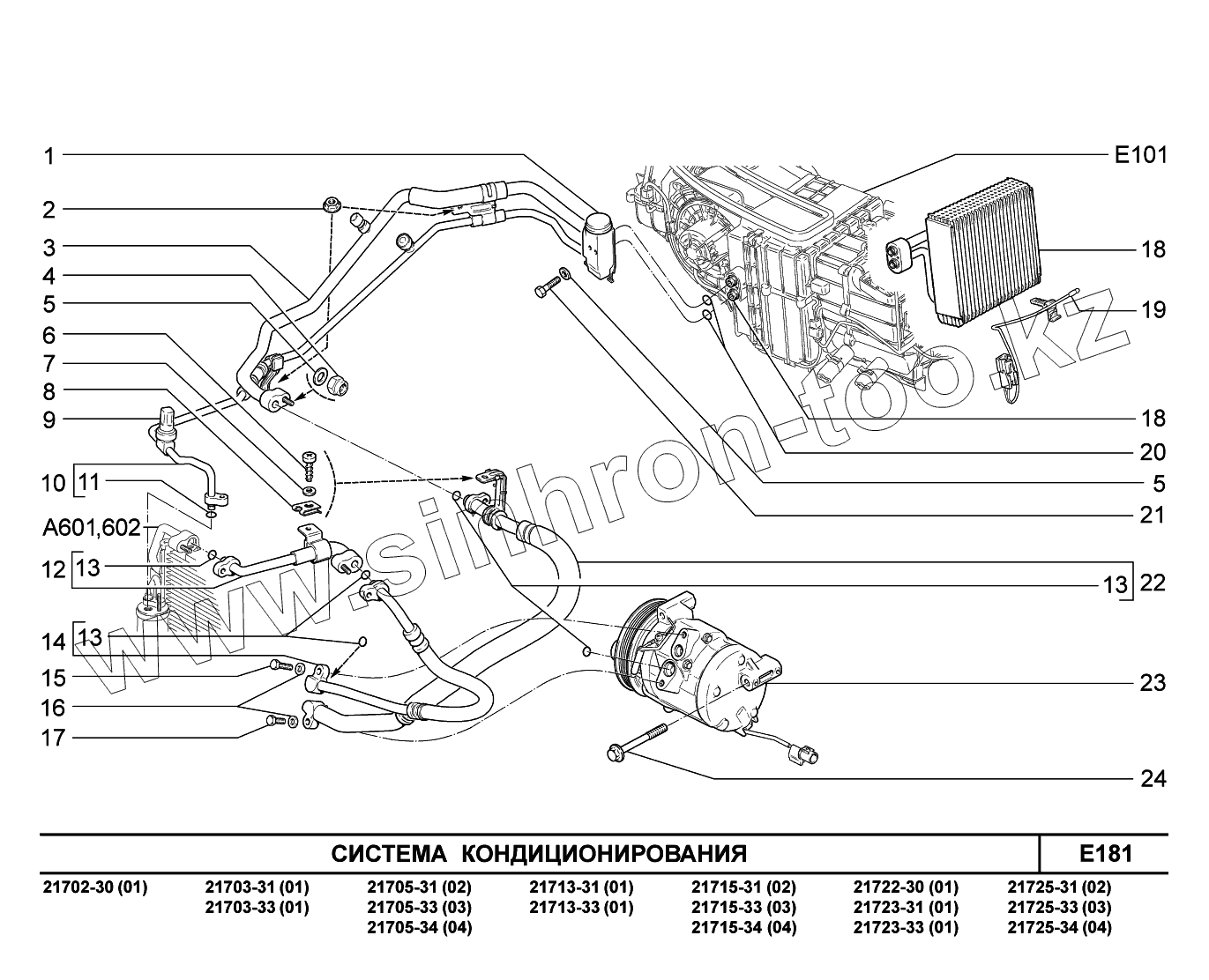 Каталог запасных частей к технике: ВАЗ LADA Priora FL (ВАЗ-2170). E181. Система кондиционирования