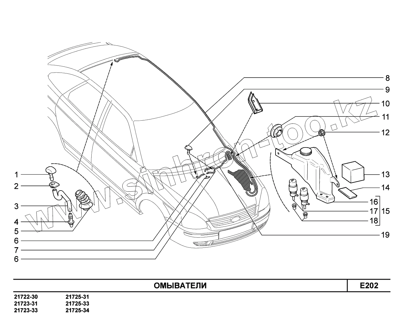 Каталог запасных частей к технике: ВАЗ LADA Priora FL (ВАЗ-2170). E202. Омыватели