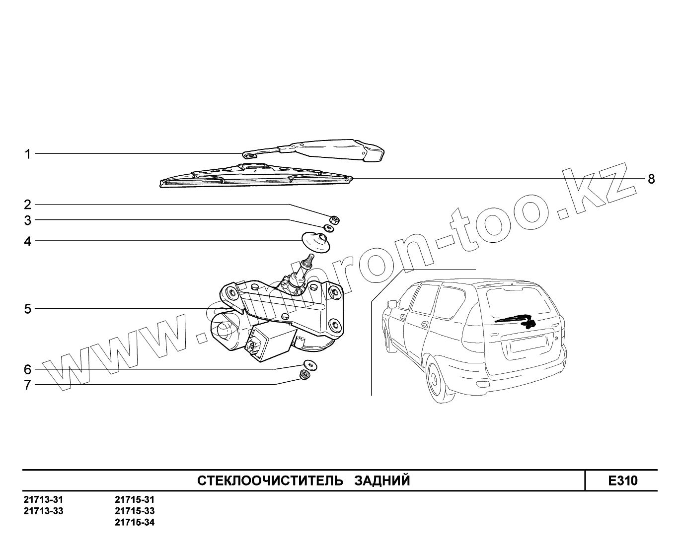 Каталог запасных частей к технике: ВАЗ LADA Priora FL (ВАЗ-2170). E310. Стеклоочиститель задний