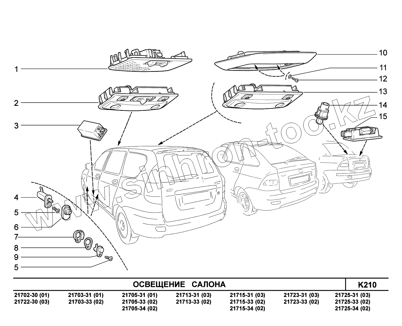 Каталог запасных частей к технике: ВАЗ LADA Priora FL (ВАЗ-2170). K210. Освещение салона